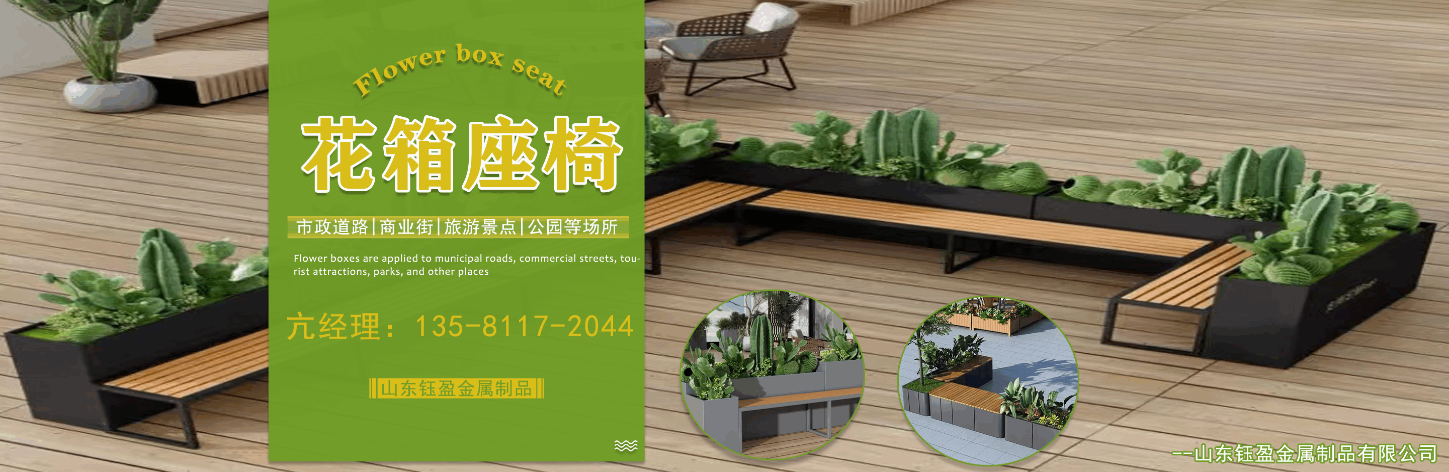 山東鈺盈金屬制品有限公司主營鍍鋅板花箱,道路隔斷花箱,定制花箱,戶外道路花箱,花箱座椅等產品,產品結構合理、性能優良,具有強度高、耐腐蝕、抗老化、隔熱隔音、節約能源、外形美觀、使用壽命長等優點,深受國內外客戶認可。  我們根據客戶所在城市的文化特征,制造出符合當地城市文化氣息的自然立體、觀賞性強的花箱產品成為城市里一道靚麗的風景線?! 」緦嵭姓\實、公正、守信、價格合理、平等互利?! 」緫{借雄厚經驗實力,恪守誠信為本的原則,得到了眾多客戶的信賴,并在業界獲得良好的口碑。建立了穩固的合作關系,隨著業務的不斷發展和壯大,合作伙伴的范圍也在不斷擴大。我們熱情盼望與您的合作,為社會的可持續發展獻上一份努力。...